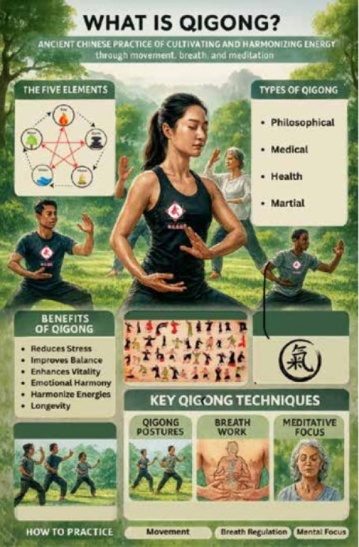 Qigong is an ancient Chinese art that integrates movement, breath and intention to cultivate and harmonize vital energy known as Qigong. The term “Qigong” combines two words: Q, meaning “life energy” or “vital breath,” and Gong , meaning “skill” or “cultivation.” Together, Qigong means “the skill of cultivating energy.” It is one of the oldest holistic health systems in the world, with roots extending over 4,000 years into the Taoist, Buddhist and Confucian traditions.